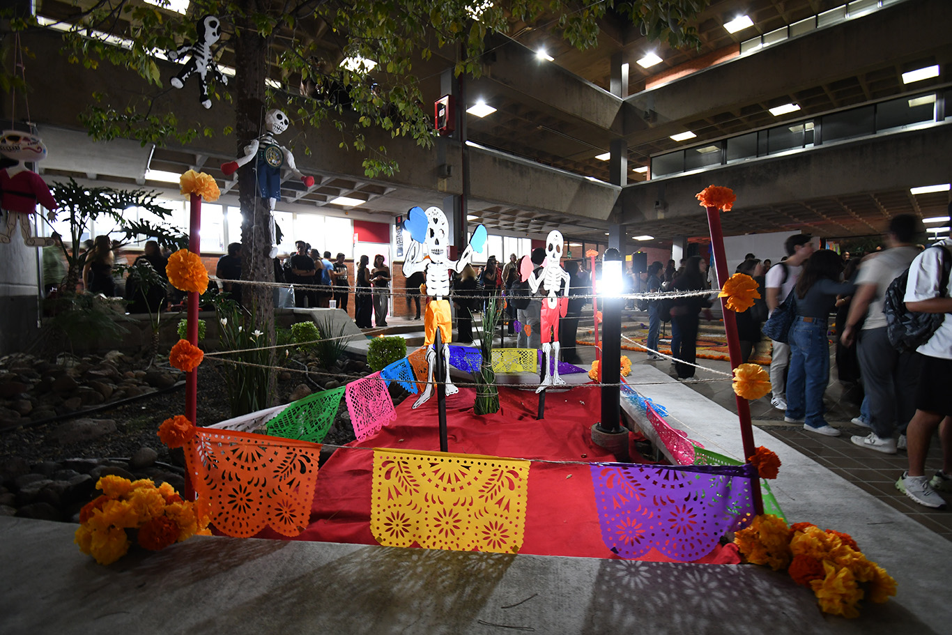 En el patio central del edificio de aulas, la comunidad estudiantil, docente, personal administrativo y de servicios de la Universidad Iberoamericana León, se reunió para celebrar el Día de Muertos.
