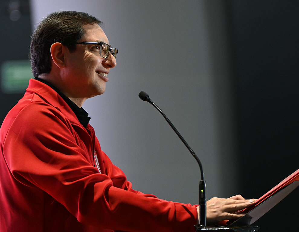 En su mensaje, el rector, Mtro. Luis Alfonso González Valencia S.J., dijo que esta justa celebra el deporte como un espacio de encuentro, convivencia y crecimiento: “Nos convoca el lema ‘Ganamos en comunidad’ que nos invita a mirar más allá de los resultados deportivos (…) El triunfo verdadero sucede cuando la entrega es con y para los demás. El deporte nos enseña a ser humildes en la derrota y generosos en la victoria; a entender que todo logro individual se sostiene del trabajo en equipo, de la fuerza y el soporte comunitario: El sueño compartido”.